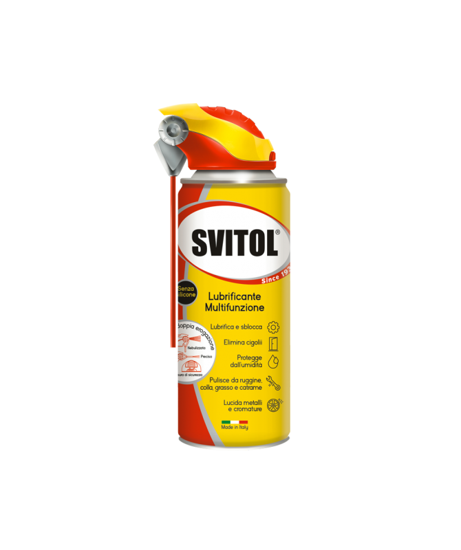 Lubrifica, elimina gli attriti, sblocca, elimina l’umidità, previene la ruggine e protegge tutte le superfici metalliche. Grazie alla sua esclusiva multifunzionalità, Svitol Lubrificante è il prodotto ideale per mille occasioni d’uso, dall’industria all’autoriparazione, dalla casa al giardino, dallo sport alla nautica, dal lavoro al fai da te.